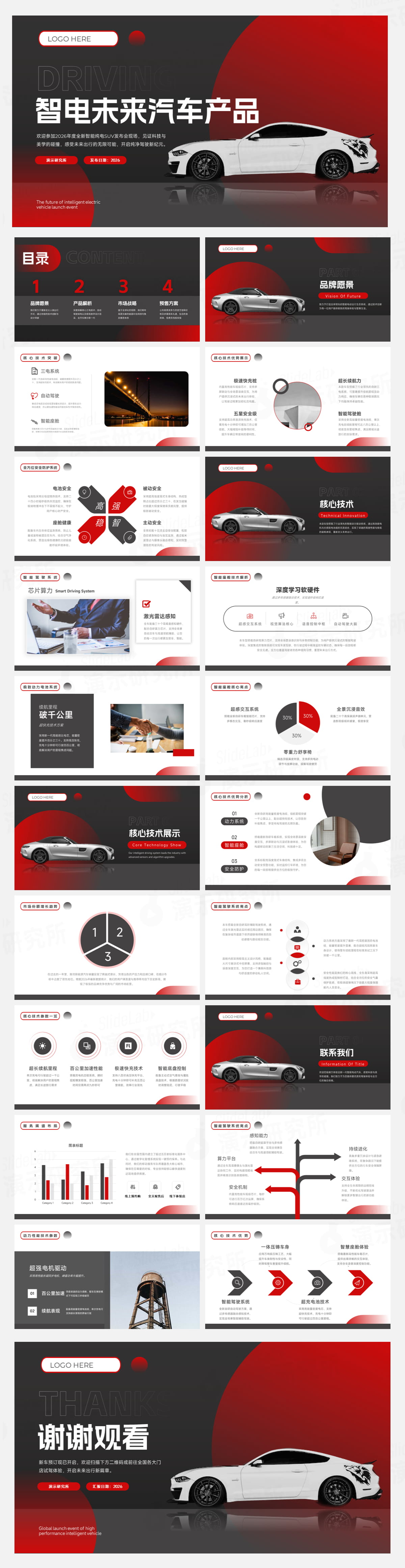 产品产品介绍产品宣传介绍分析商务大气展示新能源智能暗色汽车渐变科技红色运营