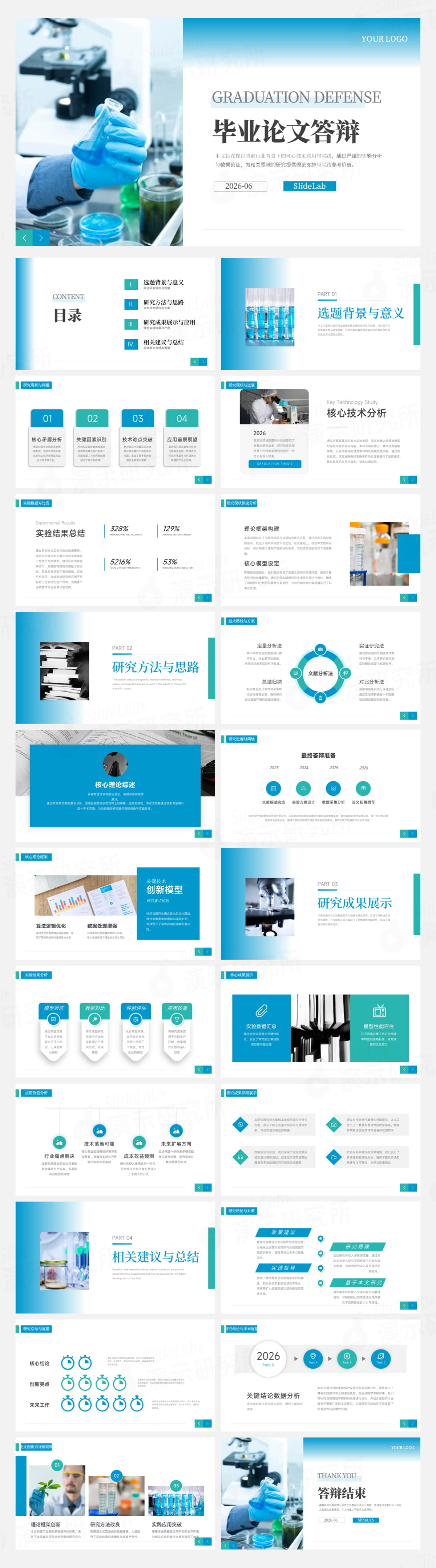 学术学校学生导师开题毕业毕业答辩科研答辩简洁简约蓝色论文论文答辩