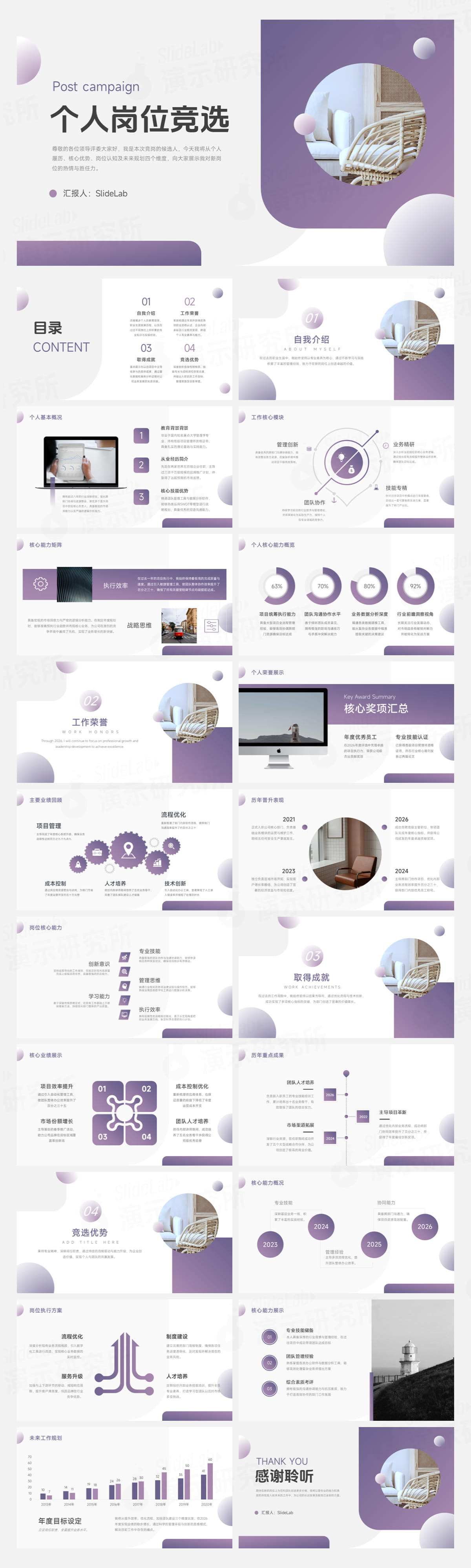 紫色高端渐变个人岗位竞选PPT模板
