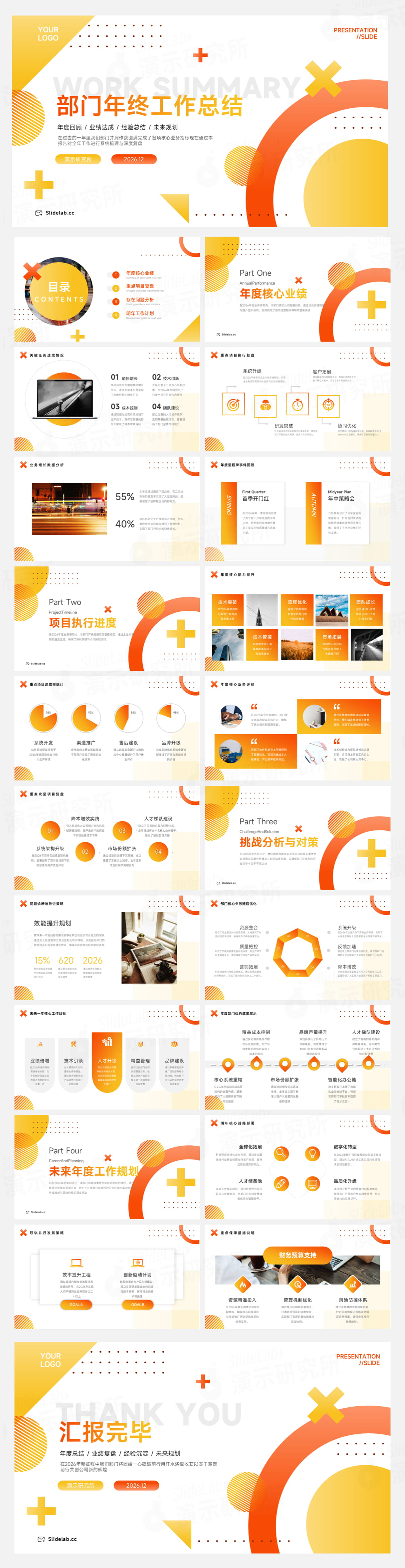 商务季度总结工作总结工作计划市场年中年中总结年终年终总结总结报告杂志风橙色汇报计划部门
