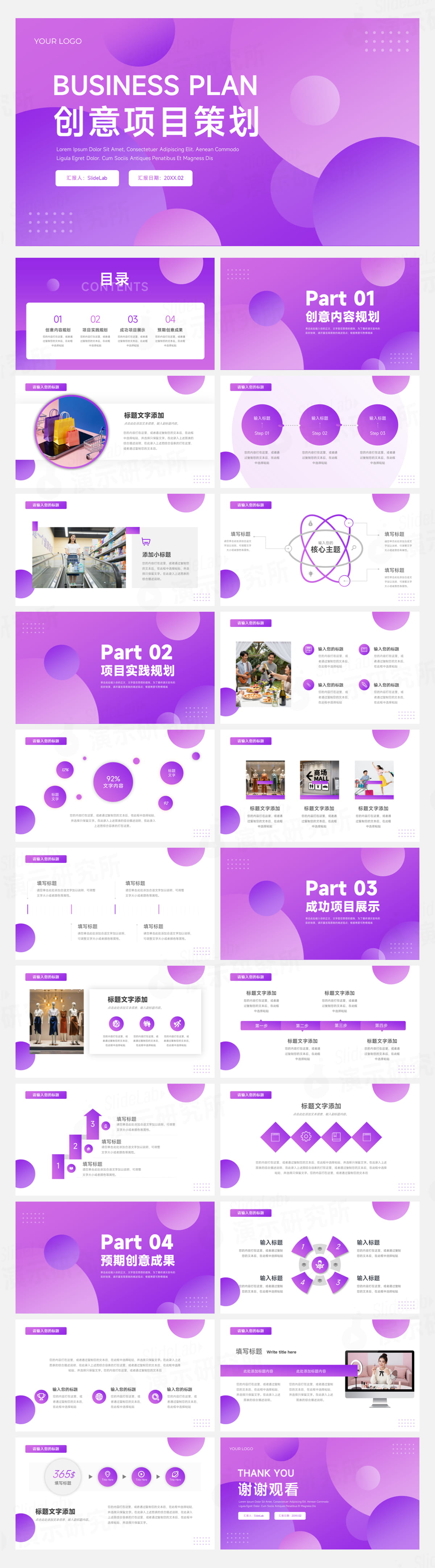 紫色时尚渐变活动营销策划PPT模板