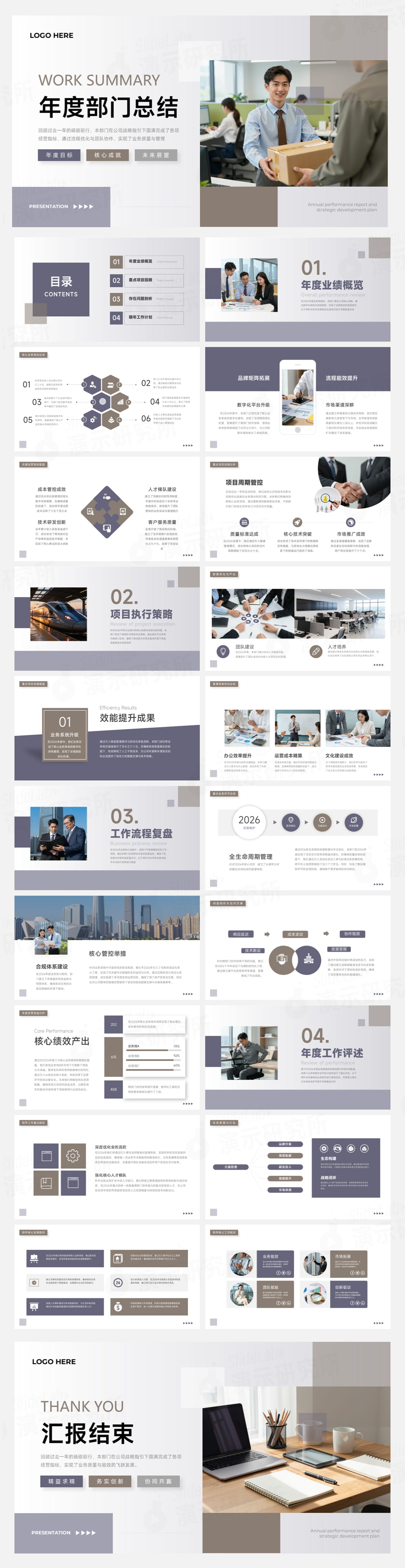业绩人物企业办公商务封面年度总结报告汇报灰色现代目标简约管理米色职场规划通用部门