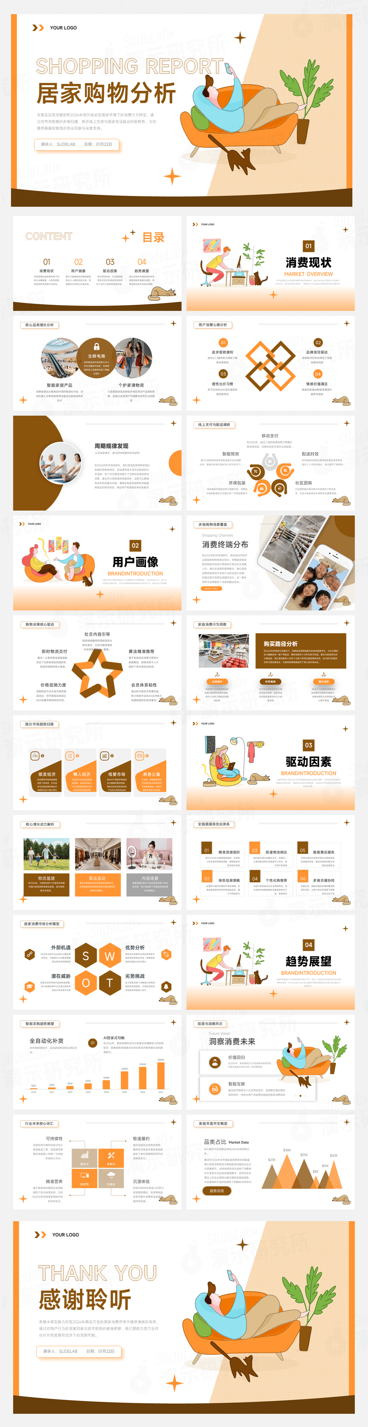 分析商业分析家居居家展示市场扁平报告插画数据暖色橙色汇报消费清新生活电商简约调研购物