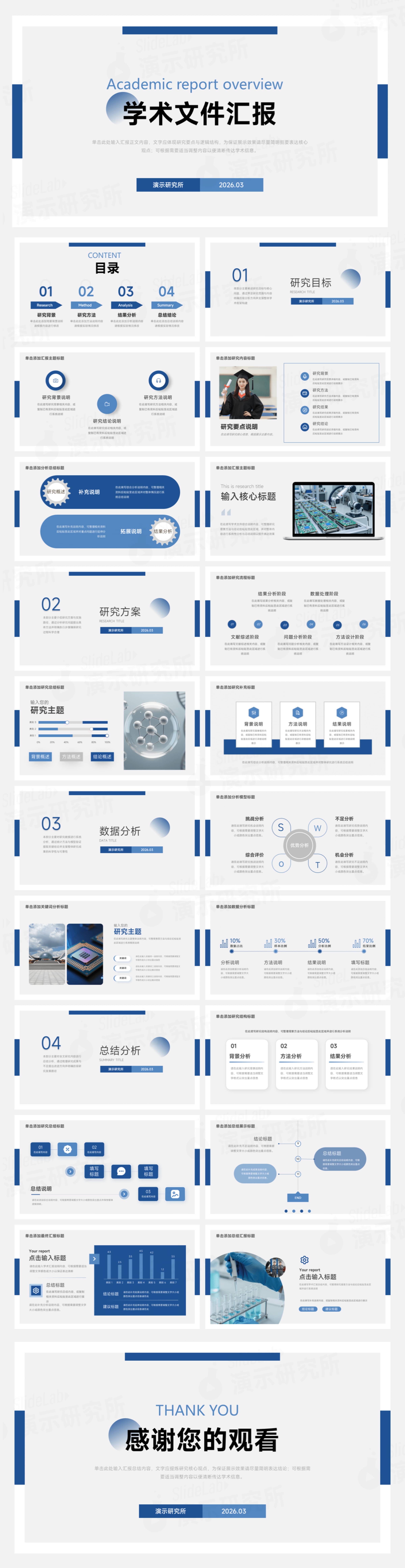 商务大气学术封面展示扁平报告教育数据模板汇报清新现代研究科研答辩简约蓝色论文通用