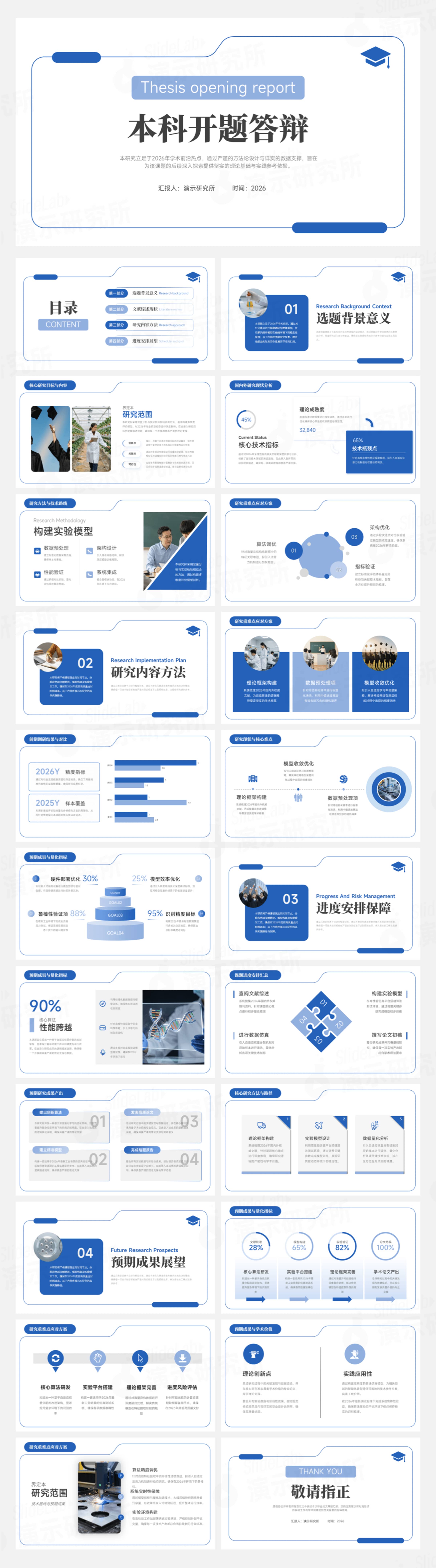 大气学术展示开题报告排版教育本科清新演示研究答辩简约线条蓝白论文设计边框通用高校