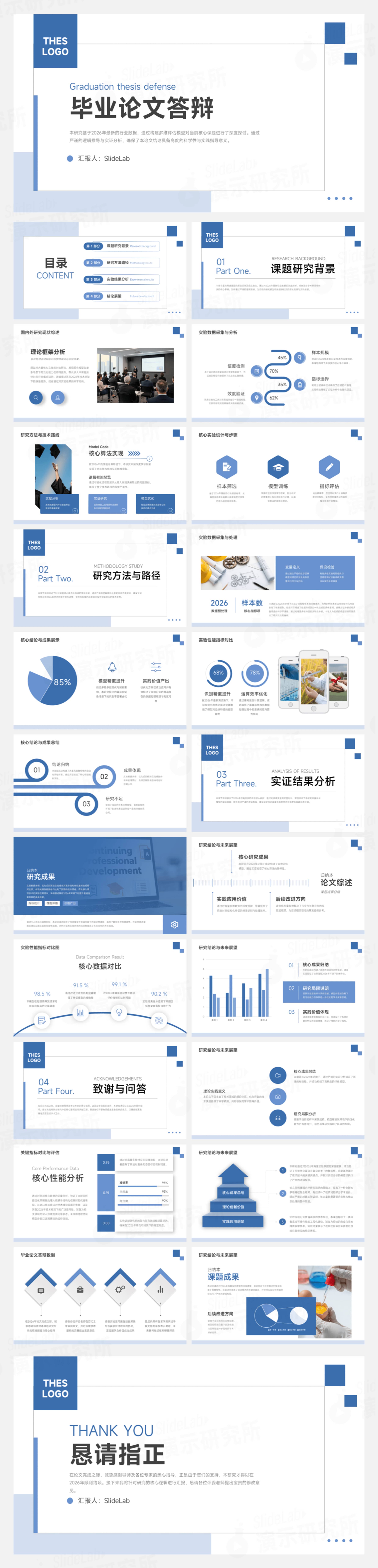 蓝白简约学术答辩毕业论文展示PPT模板