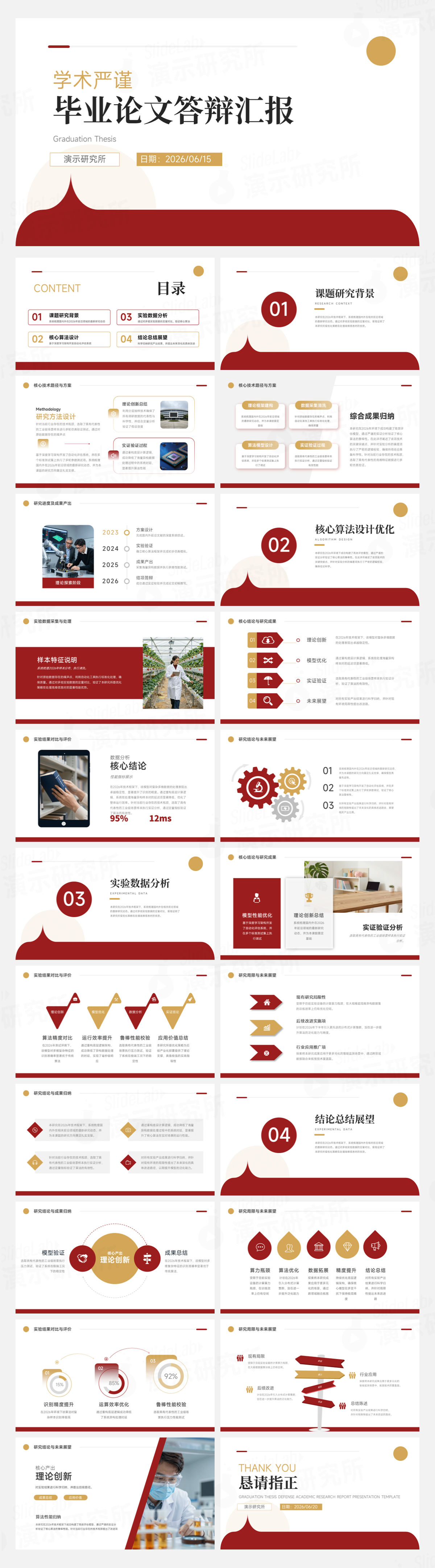 圆形大气学术展示成果报告排版教育曲线毕业渐变现代留白答辩简约红白论文设计感通用高校