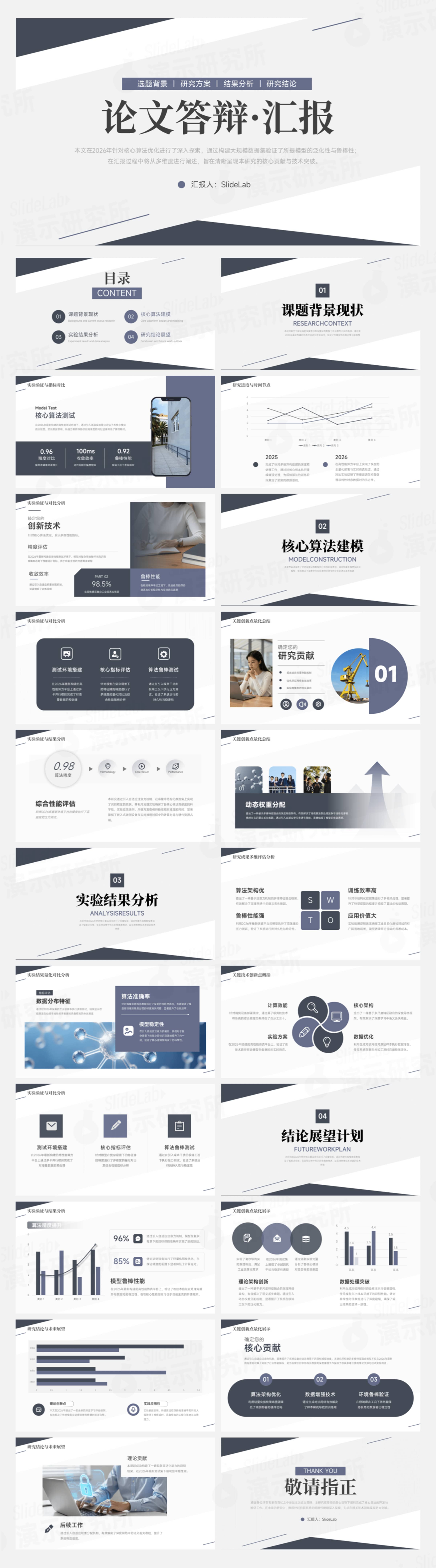 几何大气学术封面展示教育极简模板毕业汇报灰蓝现代科研答辩线条论文设计课题通用高校