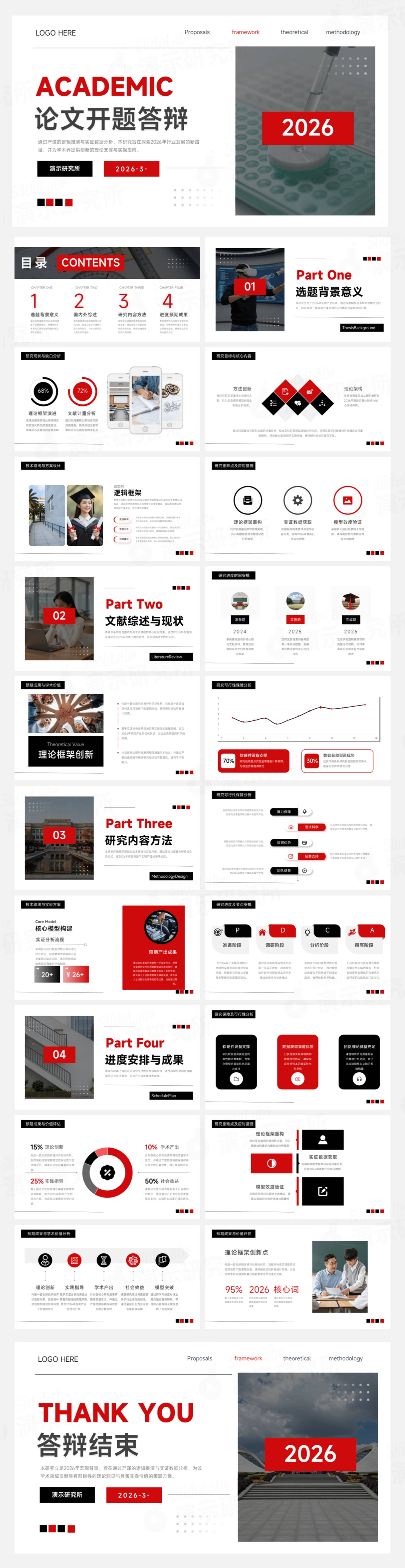 红白简约商务学术风论文开题答辩PPT模板