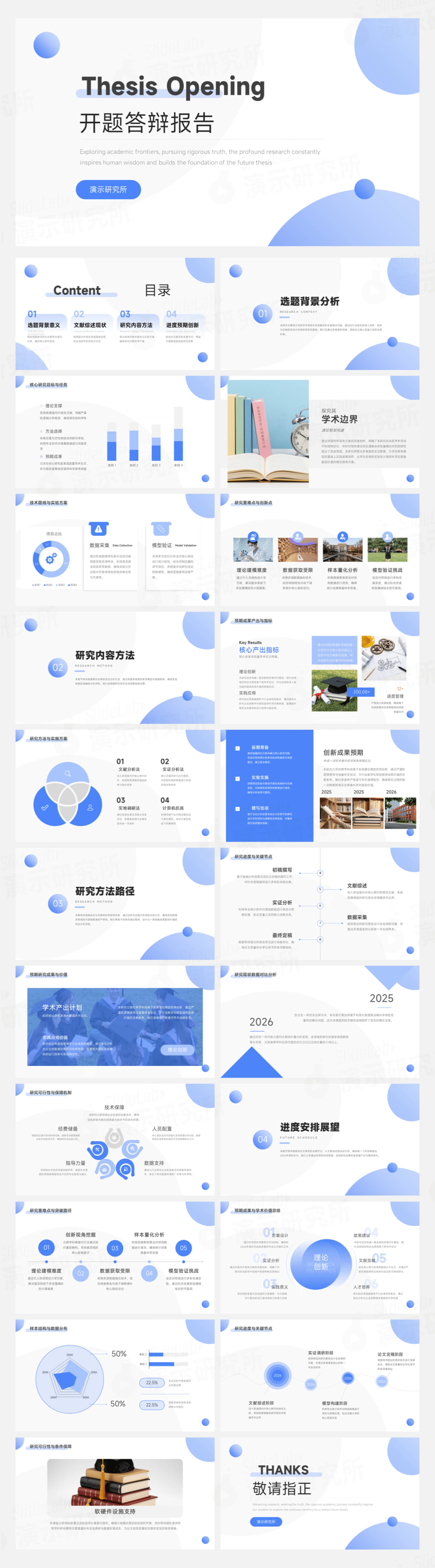 蓝灰商务简约学术风毕业论文开题报告PPT模板