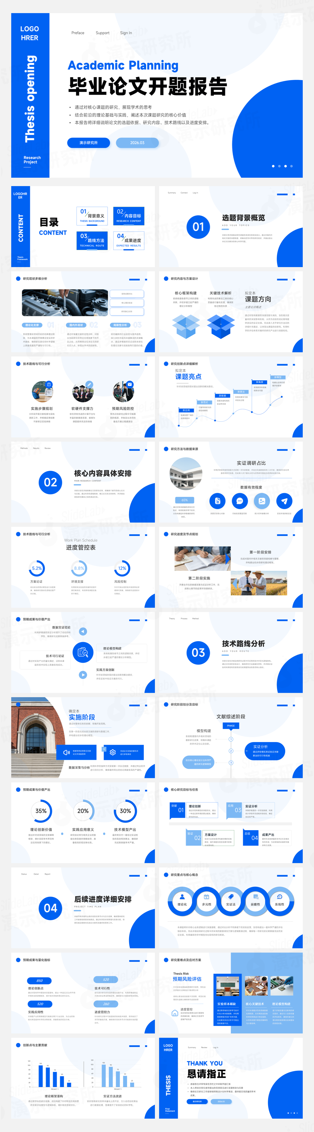 商务大气学术封面展示开题报告排版教育毕业清新现代研究科研答辩简约蓝色论文项目高校