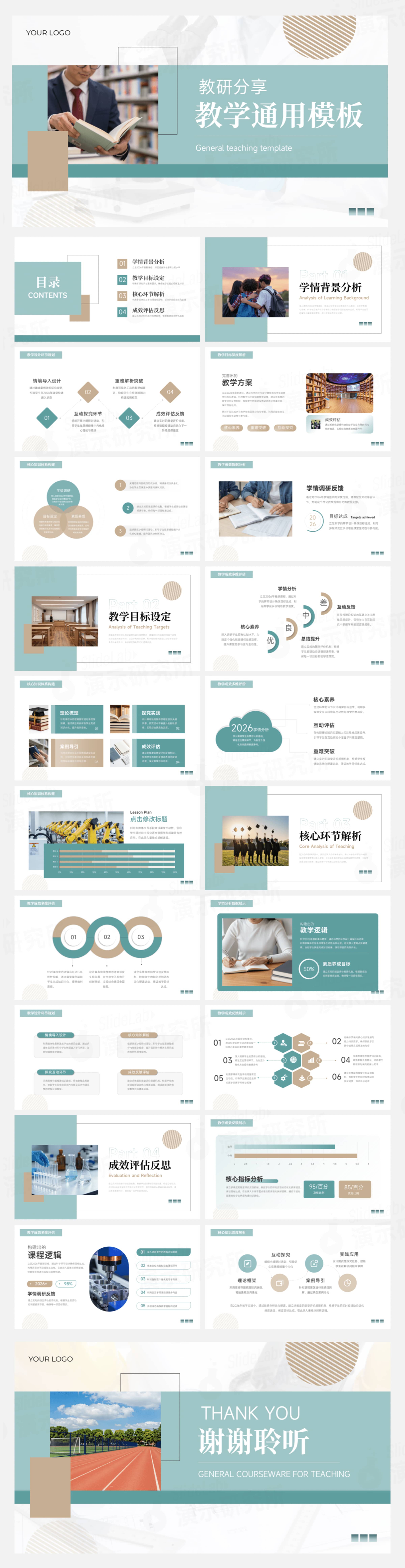 商务培训学习学校学生展示教学教师教研教育汇报清新现代知识简约绿色读书课堂通用青色