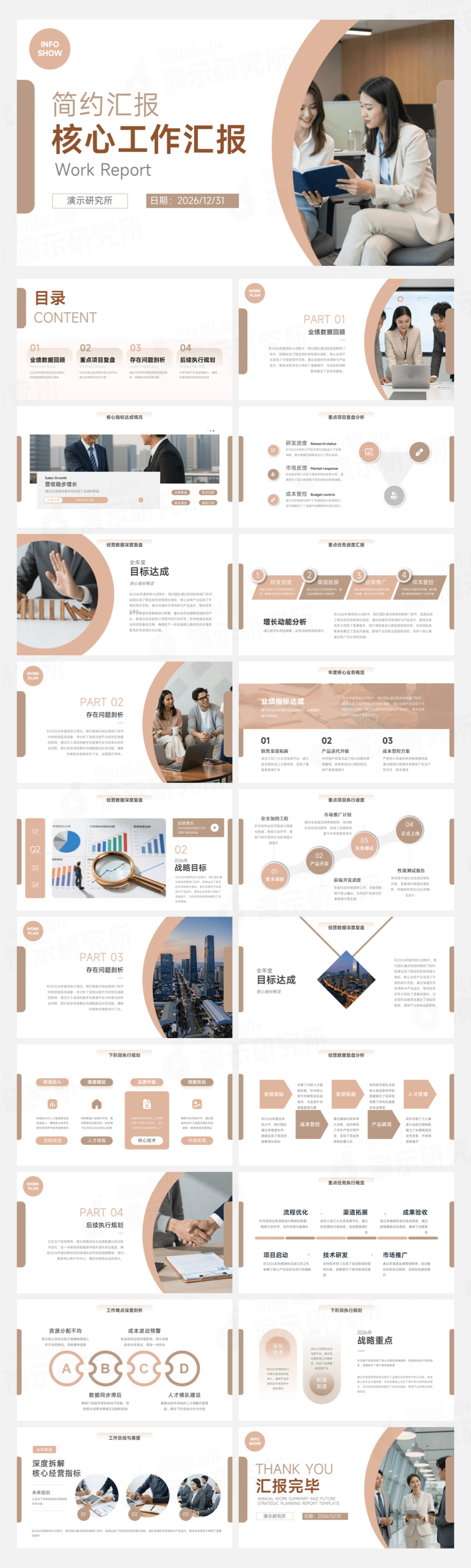棕米色简约商务核心工作汇报总结通用PPT模板