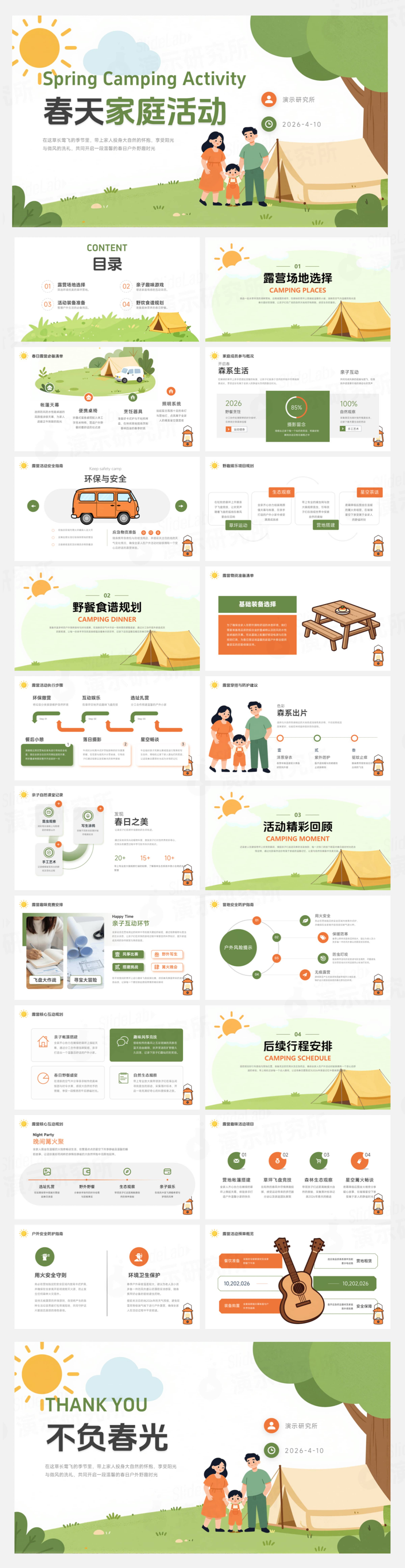 亲子儿童卡通可爱宣传家庭展示户外插画教育春天活动清新温馨生活简约绿色自然阳光露营