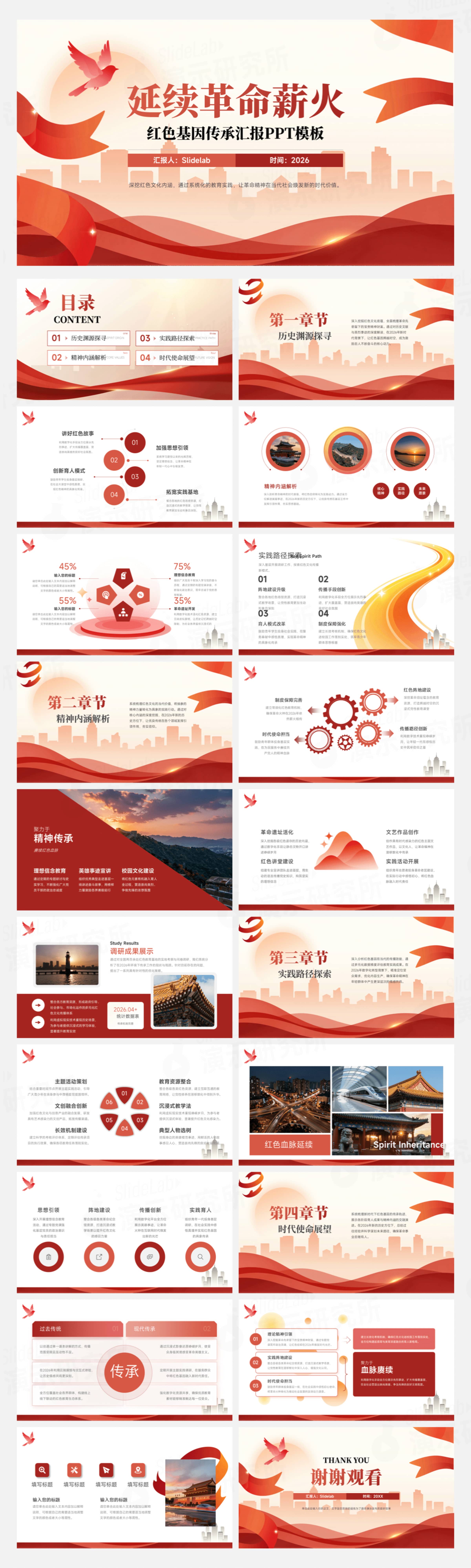 丝带中国风主题传承党建党政剪影城市大气宣传庄重总结报告政务教育文化汇报渐变红色飘带
