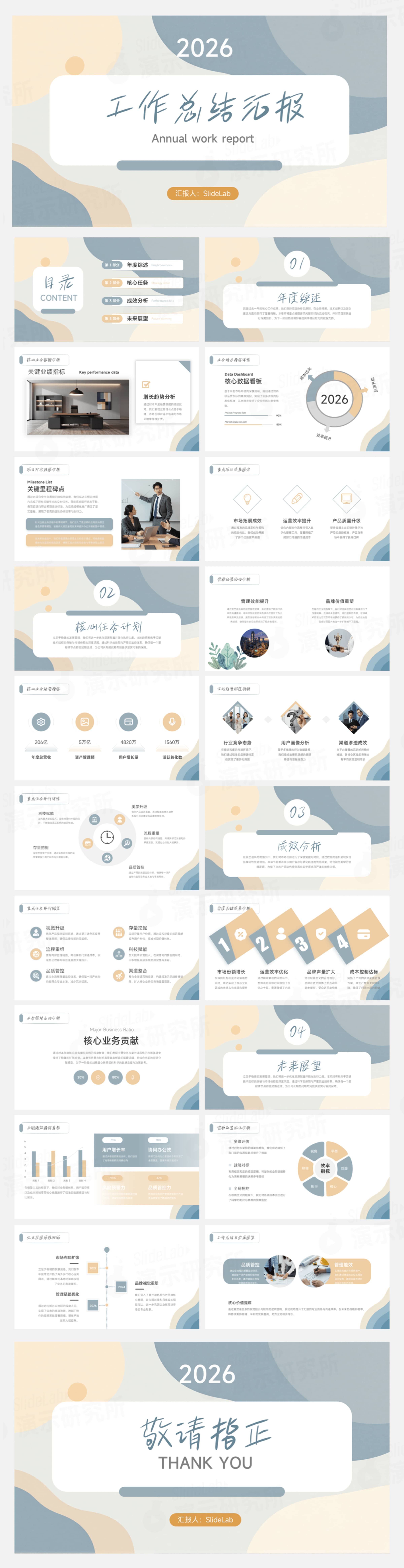 专业企业分析办公商务大气展示年终总结报告数据模板汇报清爽渐变现代简约职场蓝灰通用