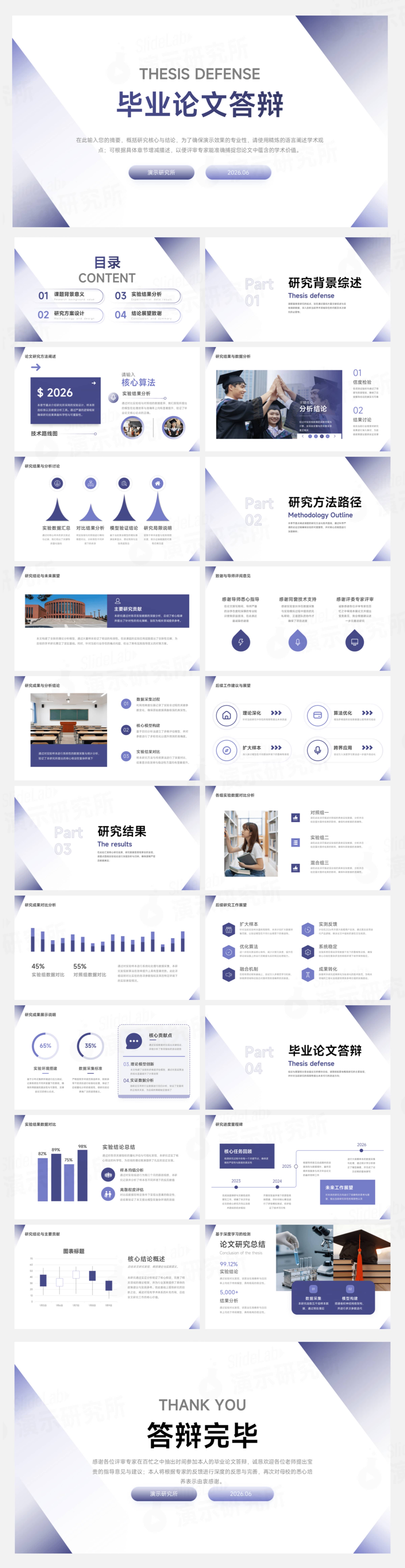 蓝紫渐变简约学术风毕业论文答辩PPT模板