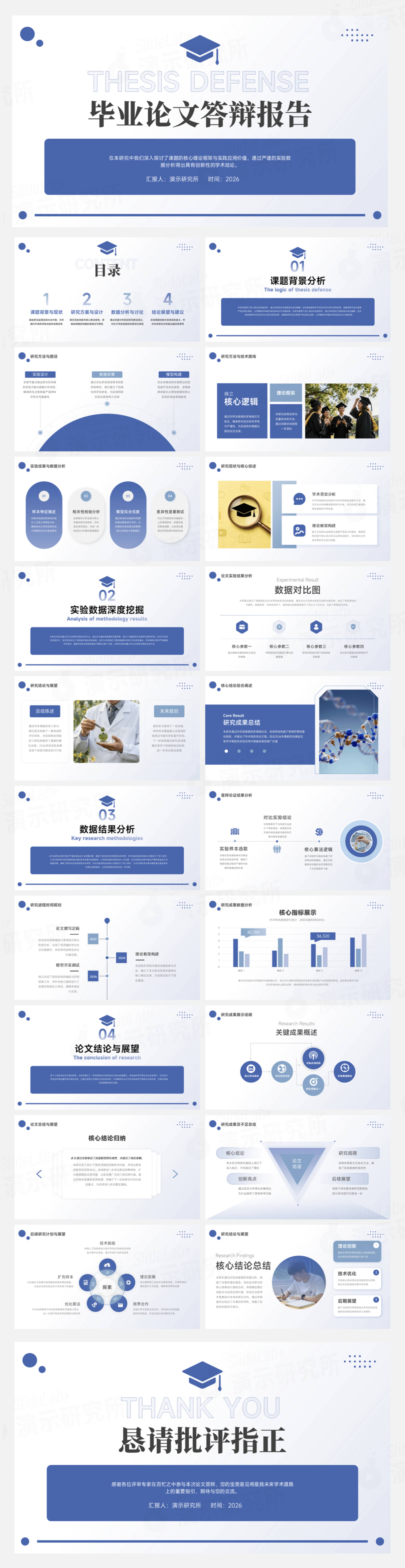 浅灰蓝简约学术风毕业答辩展示PPT模板